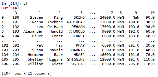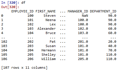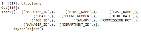 오라클 DB에서 불러온 테이블을 데이터 프레임 형식으로 확인해보면 컬럼이 없는것을 확인할 수 있다.