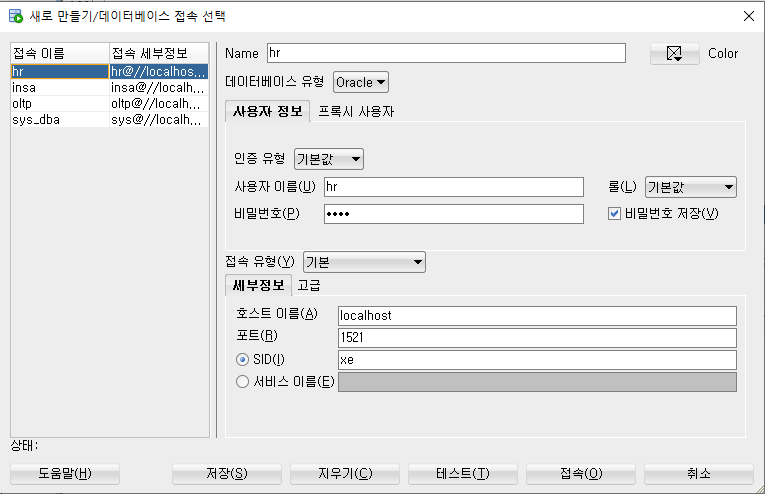 4. 접속해야할 DB서버의 아이피 주소 혹은 서버이름, 포트번호, SID 정보를 입력한다.