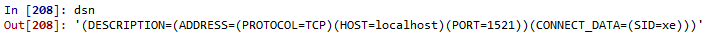 dsn = cx_Oracle.makedsn("localhost",1521,"xe")