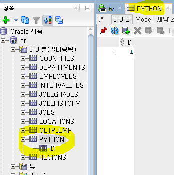파이썬에서 오라클 DB에 테이블 생성