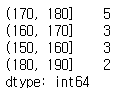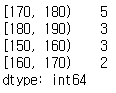 # 분할 구간 만들기 (150~160, 160~170, 170~180, 180~190)