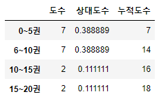 # 도수분포표 데이터프레임 형식으로 만들기 bins = list(range(0,21,5)) |