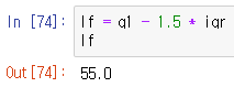 # 최저한계치(lower fence) 찾는 방법 lf = q1 - 1.5 * iqr lf |