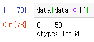 # 아래 이상치 data[data < lf] |