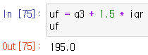 # 최고한계치(upper fence) 찾는 방법 uf = q3 + 1.5 * iqr uf |