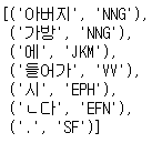 # 텍스트를 형태소 단위로 나눈다. kkma.morphs(txt) | ![]() |
