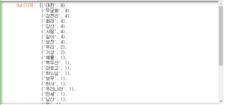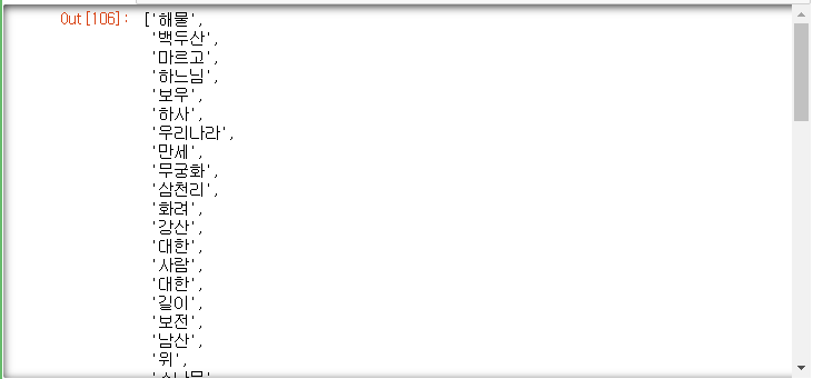 # 텍스트에서 명사만 추출 kkma.nouns(txt) | ![]() |