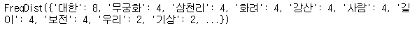 # 단어들의 빈도수 체크 ko.vocab() | ![]() |
