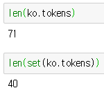 # 중복되는 단어 제거 len(ko.tokens) | ![]() |