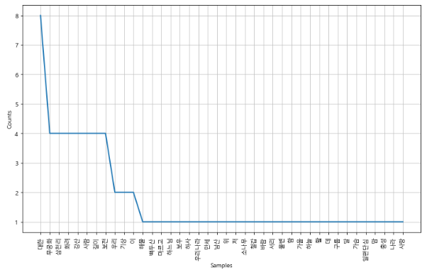 # 다시 단어들을 문장으로 만들기 ko = nltk.Text(token_ko) | ![]() |
