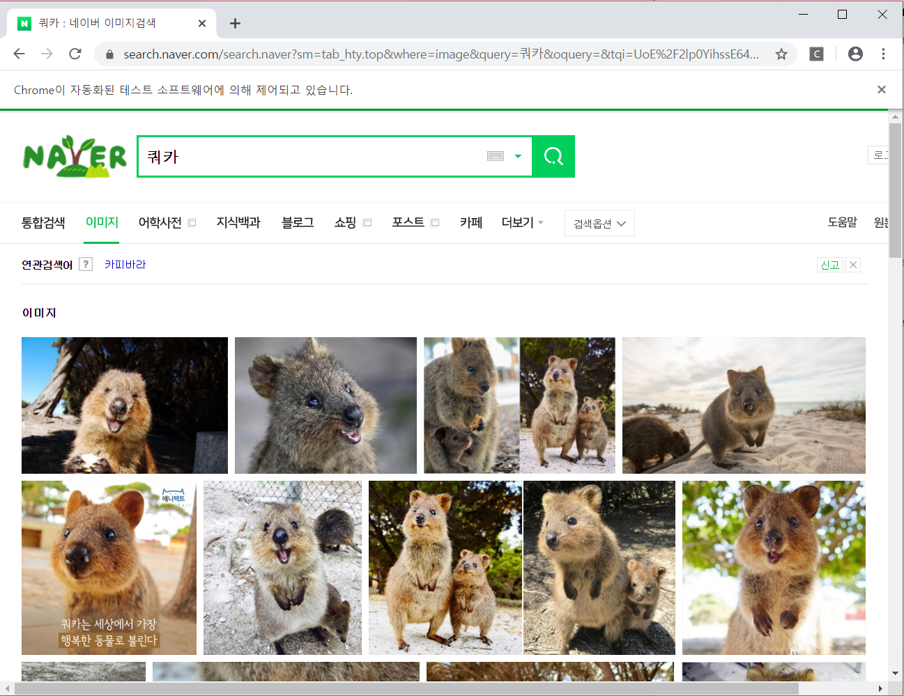 # 검색어 입력 key_box.send_keys("쿼카")