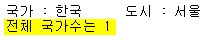 | # 인스턴스를 삭제해도 전체 국가수는 줄어들지 않는다. del con2 con1.show() con1.con_count() |