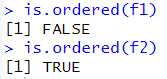 # 순서형 factor 타입인지 확인 is.ordered(f1) is.ordered(f2) |