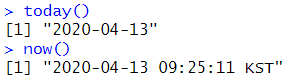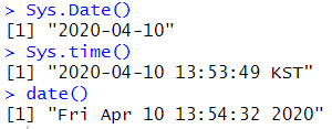 # 현재 날짜 # 현재 날짜, 시간 Sys.time() date() |