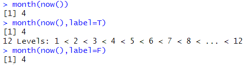 # 달 추출 month(now()) # format(Sys.Date(),'%m') month(now(),label=T) month(now(),label=F) #기본값 |