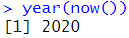 # 년도 추출 year(now()) # format(Sys.Date(),'%Y') |