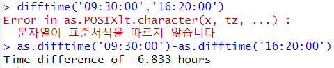 7. as.difftime() : 시간의 차이