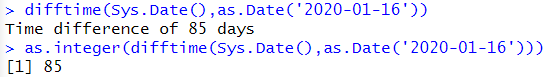 difftime(Sys.Date(),as.Date('2020-01-16')) |
