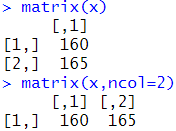 # 벡터 형식을 데이터 프레임으로 형변환 # 벡터 -> 매트릭스 matrix(x) matrix(x,ncol=2)