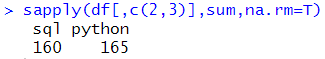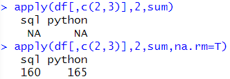 x<-sapply(df[,c(2,3)],sum,na.rm=T) ![]() |