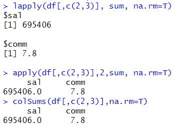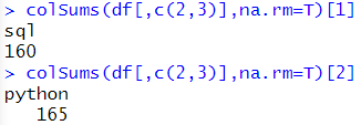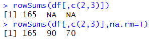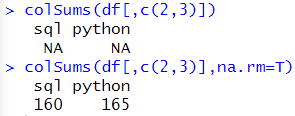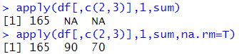 | sapply(df[,c(2,3)],sum,na.rm=T) | ![]() |