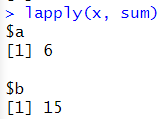# 키 별로 따로 계산 lapply(x, sum) |