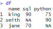 df <- data.frame(name = c("king","smith","jane"), ![]() |