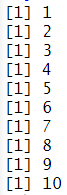 # 기본 사용법 for(i in 1:10){ print(i) } |