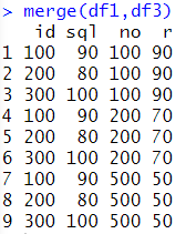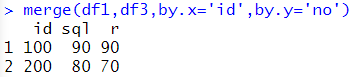 | merge(df1,df3,by.x='id',by.y='no') | ![]() |