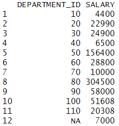 # 기존방식 rbind(aggregate(SALARY ~DEPARTMENT_ID,emp,sum), |