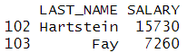# 원하는 컬럼만 뽑아낼때 따옴표를 사용하지 않아도 된다. subset(emp,DEPARTMENT_ID==20,select=c(LAST_NAME,SALARY)) subset(emp,DEPARTMENT_ID==20,select=c('LAST_NAME','SALARY')) |