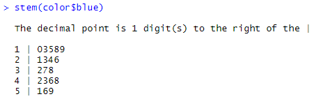 # blue 컬럼 줄기잎그림으로 만들기 stem(color$blue) |