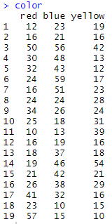 # csv 파일 읽어들이기 color <- read.csv("C:/pypy/color.csv",header=T) |