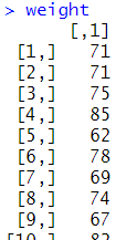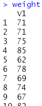 # 원본 weight <- read.table("C:/data/weight_1.txt",header=F) class(w) |