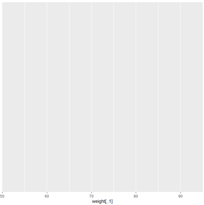 # 그래프 배경 그리기 ggplot(weight,aes(x=weight[,1])) |
