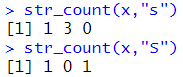 # 소문자 s가 몇개가 나오는지 # 대문자 s가 몇개가 나오는지 str_count(x,"S") |