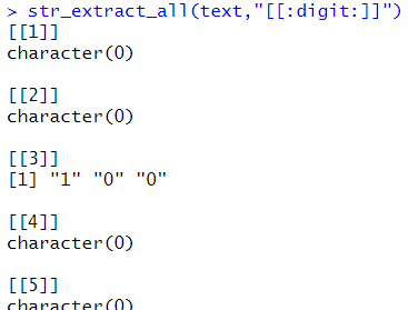 # str_extract_all : 문자 전체 str_extract_all(text,"[[:digit:]]") |
