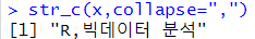 # 사이에 문자를 넣고 문장으로 합치기 x <- c("R","빅데이터 분석") str_c(x,collapse=",")