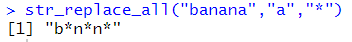# 다 바꾸려면 str_replace_all 사용 str_replace_all("banana","a","*") |