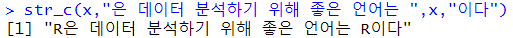 # 그냥 이어서 합치기 str_c("R","빅데이터 분석") |
