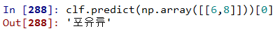 | # 라이브러리 임포트 import pandas as pd import numpy as np from collections import Counter from sklearn.neighbors import KNeighborsClassifier # 데이터 불러오기 animal = pd.read_csv("C:/data/animal.csv") # 거리계산을 위해 배열로 만들기 x_train = np.array(animal.iloc[:,1:3]) y = np.array([[6,8]]) x_train.shape y.shape # 거리계산값 저장 animal["dist"] = np.sqrt(np.sum(pow(x_train - y,2),axis=1)) # 순위 매기기 animal['rank'] = animal["dist"].rank(ascending=True,method="dense") # 5등까지 클래스 뽑아내기 animal[animal['rank'] <= 5]['종류'] # 빈도수 체크 후 가장 빈도수가 높은것 뽑기 Counter(animal[animal['rank'] <= 5]['종류']).most_common(1)[0][0] ------------------------------------------------------------ x_train = np.array(animal.iloc[:,1:3]) label = animal['종류'] # 인스턴스 만들기 # n_neighbors : k값 clf = KNeighborsClassifier(n_neighbors=5) # 학습시키기 clf.fit(x_train,label) # 예측하기 clf.predict(np.array([[6,8]]))[0] |