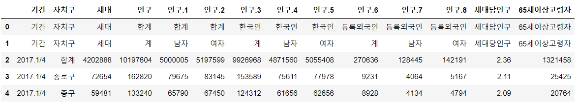 pop_Seoul = pd.read_excel("C:/datascience_train/data/01. population_in_Seoul.xls", encoding='utf-8', |