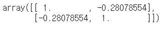 | # 고령자 비율과 CCTV 의 상관관계 구하기 np.corrcoef(data_result['고령자비율'],data_result['소계']) |