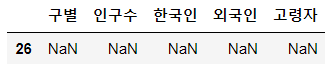 | pop_Seoul[pop_Seoul['구별'].isnull()] |