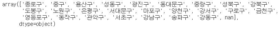 pop_Seoul[pop_Seoul['구별'].isnull()] |