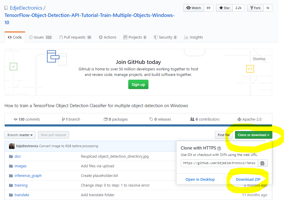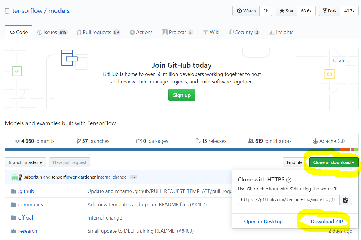 3-2 'Clone or download' -> 'Download ZIP' 버튼을 눌러 파일을 다운 받는다.