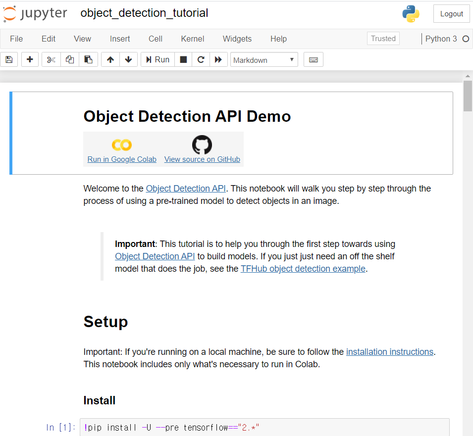 10-2 jupyter notebook object_detection_tutorial.ipynb을 실행시킨다.