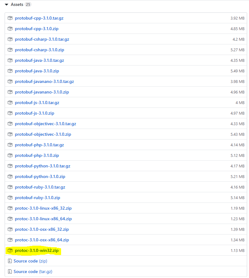 4-2 'protoc-3.1.0-win32.zip' 파일을 다운로드 받는다.