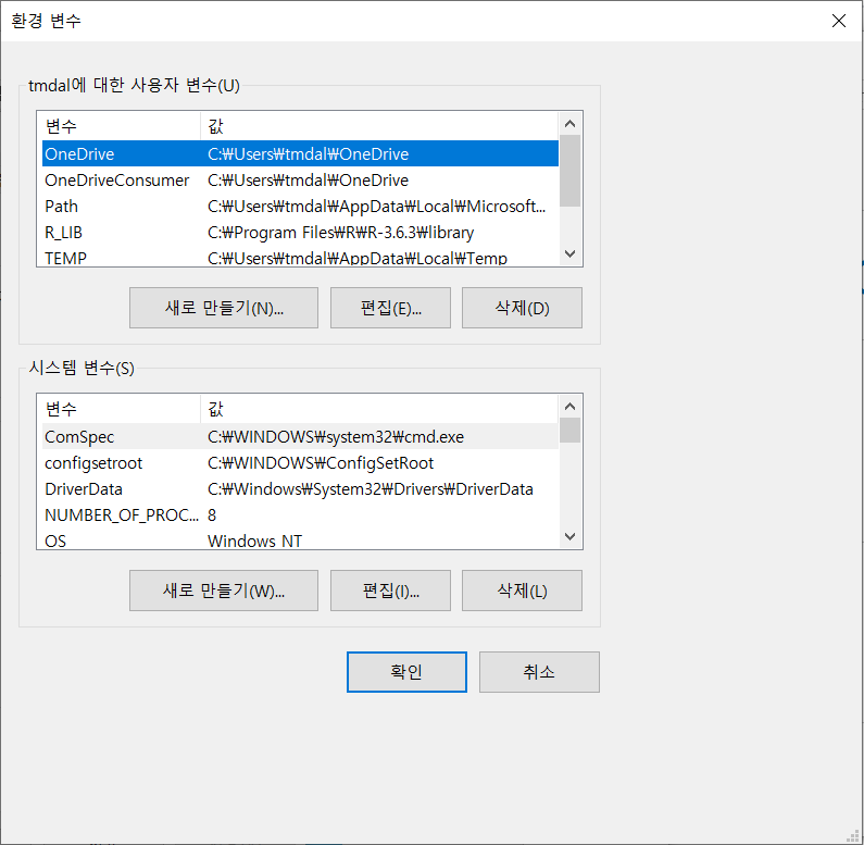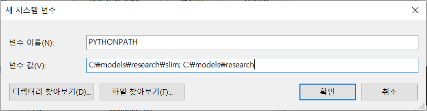 | 변수 값(V) : | C:\models\research\slim; C:\models\research |