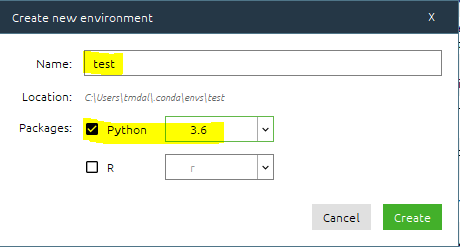 - 'Name :' 란에 가상환경의 이름을 적어준다.